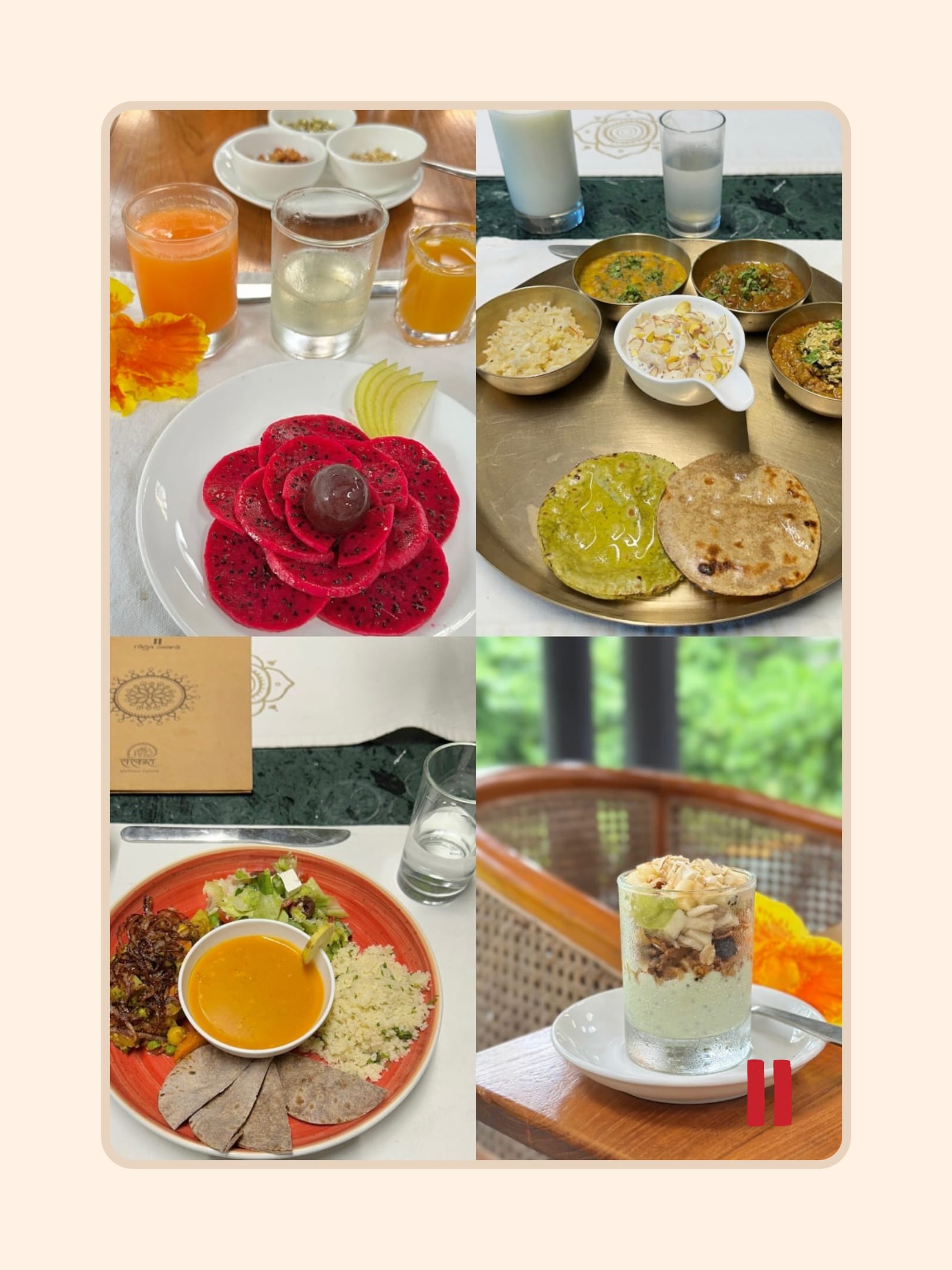 Her journey was a visual glimpse into the power of slowing down: from dancing through the rain to the grounding warmth of Ayurvedic therapies and wholesome cuisine. She reminded us that there is something uniquely transformative about the monsoon, the way the cool breeze and the sound of rain help one to reset, breathe deeply, and reconnect. We are grateful that our serene surroundings could serve as the backdrop for her unlearning and rejuvenation, and that she found a moment of pause that was truly her own.